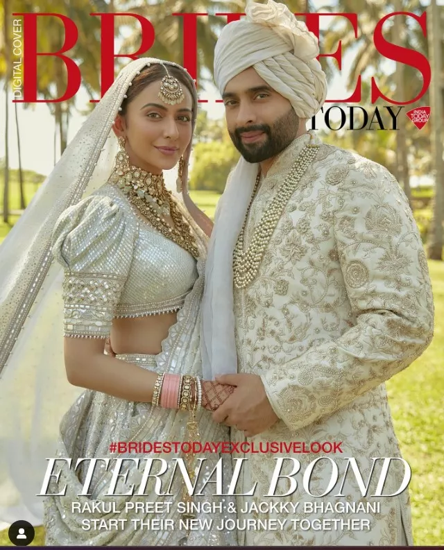 Rakul Preet Singh and Jackky Bhagnani had two wedding ceremonies; one was a Sindhi ceremony, and the other one was Anand Karajand. For the same, they turned into Tarun Tahilani's bride and groom. For Anand Karaj ceremony, Rakul donned a pastel-hued lehenga that had three-dimensional floral motifs that came in blush pink and ivory hues. Jackky, on the other hand, looked handsome in an ivory sherwani featuring chinar leaf. For their Sindhi wedding ceremony, the duo twinned in ivory ensembles, and oh boy, it was nothing less than a fairytale moment.