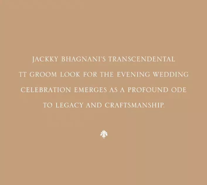 Speaking about the dapper groom, Jackky Bhagnani, he too, opted for his wedding ensemble from the shelves of Tarun Tahiliani. The talented actor-cum-filmmaker’s outfit paid a tribute to the rich cultural tapestry of the lands of Kashmir, especially the motif of the chinar leaf. Apart from the handwoven embroidery all over Jackky’s outfit, it is the leaf motif which adds charm and glory.