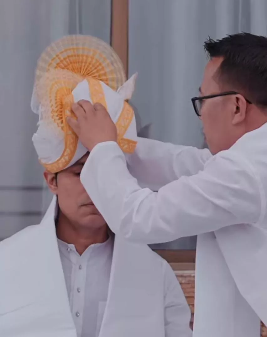 Randeep Hooda and Lin Laishram left everyone's jaws dropped with their respective traditional wedding attires. For the day, Randeep was decked up in a white-hued ensemble, including a dhoti, a kurta, a doshala, and a pagdi with yellow borders. It was Lin's look that stole the show. The diva donned a traditional magenta-hued potloi or polloi for her D-day. For those who don't know, potloi or polloi is a Manipuri bride's costume. Potloi mainly includes a cylindrical skirt and a top. The skirt is made of bamboo and thick fabric, which remains wrapped under a mirror-studded glittery satin cloth. With golden temple jewellery and sheen makeup, Lin finalised her bridal look.