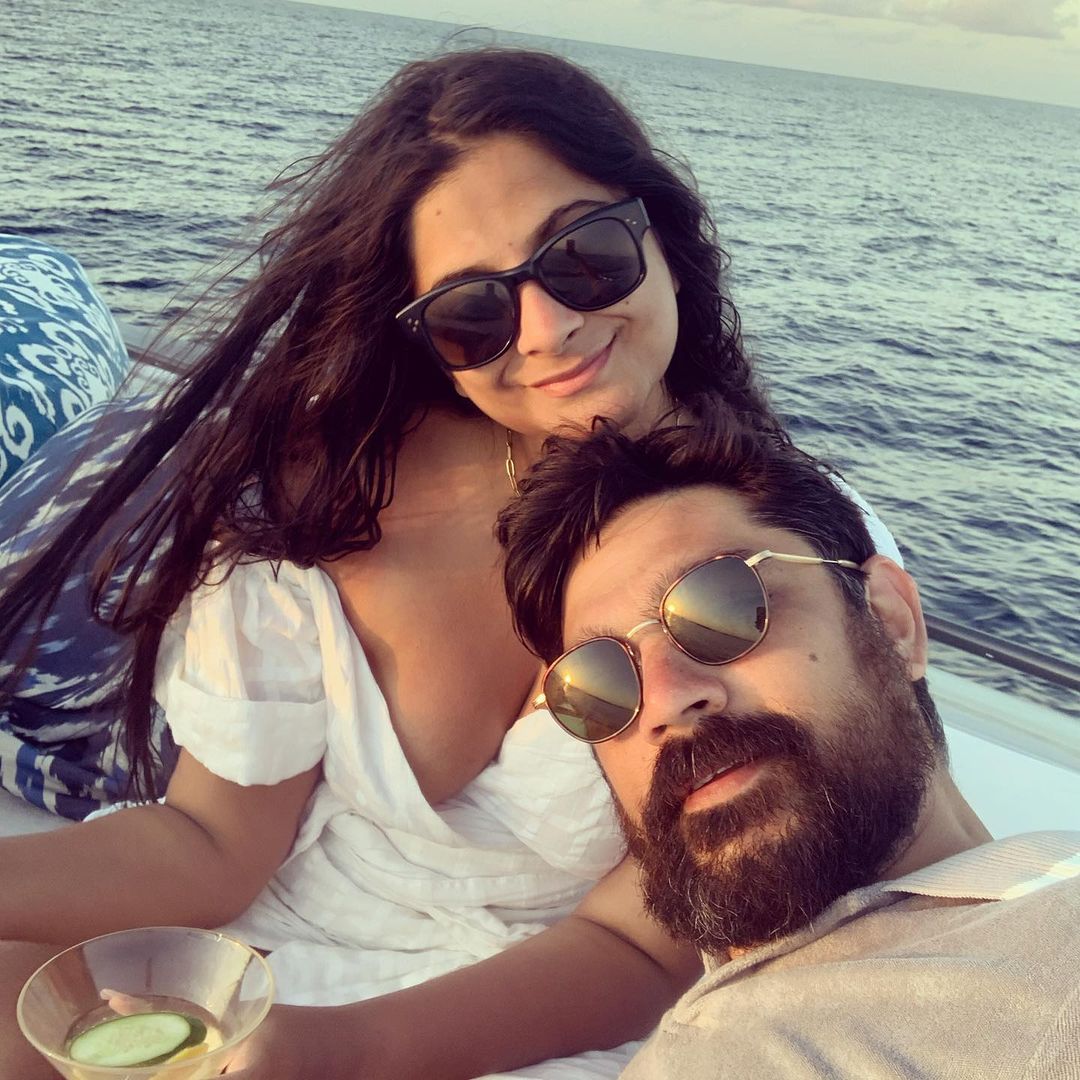 While Karan Boolani's wife, Rhea Kapoor, had donned a white low-neck dress and had flaunted it along with a cool pair of sunglasses, Karan had opted for casuals to chill on a yacht with his wife. In one of the pictures, Rhea could be seen planting a kiss on his forehead. Karan had captioned the pictures as "Overseas."