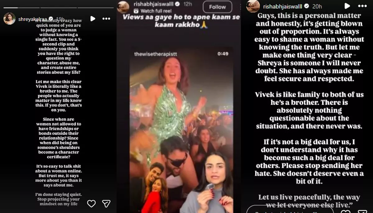 Shreya, in the post, revealed that she is in shock, seeing how, for just a 5-second clip, people could make stories around her life, character-assassinate her, or abuse her. She also added that the one in the video was just like her brother. She also questioned whether women cannot have friendships outside their relationship, while asking if being on someone's shoulder is someone's character certificate. She further slammed those who questioned her and called her names. On the other hand, Rishabh, too, took to his social media and shared his opinion on everything that has been being spread about him and Shreya's relationship.