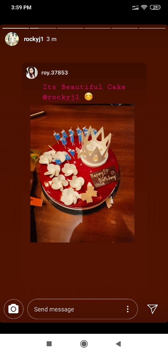 On October 2, 2019, Hina's boyfriend, Rocky made her day special with another cute cake. He posted the picture of the same as his Instagram story. Check it out below: