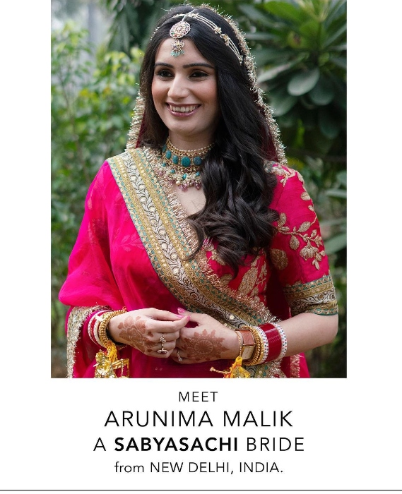 The bride of the week, Arunima Malik had tied the knot in an intimate ceremony in New Delhi. From head-to-toe, the bride had left a huge mark in our hearts with her gorgeous bridal ensemble from the shelves of Sabyasachi Mukherjee. However, she had ditched the usual red lehenga and had opted for a rani-pink colour for the big day.
