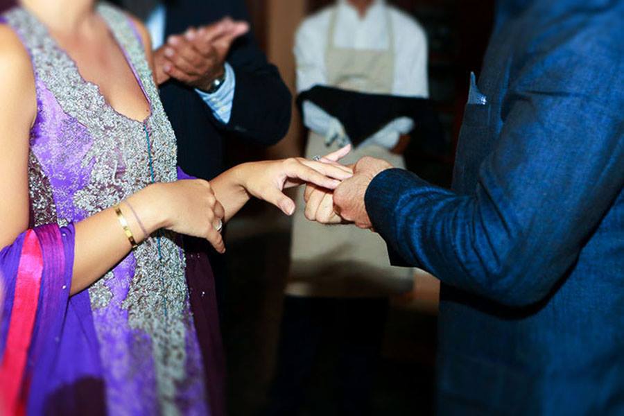 In the sagai ceremony, the couple exchanges rings and the bride’s family give gifts to the groom and his immediate family members. The groom’s family in return, gives their bahu gifts and clothes.