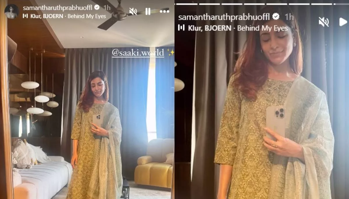 Samantha Ruth Prabhu is a social butterfly, and now and then, she takes to her social media handles to provide her fans with updates on her life. She also often interacts with her fans through her IG handle often. Well, a few hours ago, she took to her IG stories and dropped a photo of her, wherein she was all dolled up in a pista-green-toned kurta set. The actress looked gorgeous in minimal makeup and open hair. She also added the song, Behind My Eyes by Klur, BJOERN, and the lyrics of this song are breathtakingly beautiful, as it signifies strength despite a lot of downs and the serenity and peace in the beauty of nature.