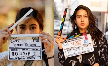 In the first picture, Sara and Amrita were all smiles as they posed for the lens. While the former was dressed in green-black activewear and was seen holding a clapper board of her film, Murder Mubarak, the yesteryear actress, on the other hand, donned a white-hued kurta, which she paired with a same-coloured dupatta and a classy sunglass. In the next picture, Sara was photographed wearing a classy old saree featuring brown detailing. Her hair was tied into a braid, and she completed her look with a bindi, and watch. Sara was posing with the clapboard of her film, Ae Watan Mere Watan. Meanwhile, Amrita radiated elegance in a white kurta, which she paired with loose-fitted jeans and a multicoloured dupatta.