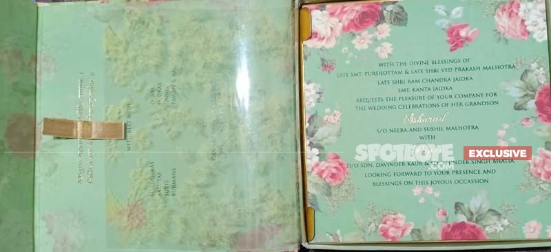 And now we don’t need any further confirmation for online portal, SpotboyE, posted the first-ever pictures of Sharad Malhotra and Ripci Bhatia’s wedding card. With a green pastel hue and the initials of their name armoring the card, the floral-designed card is a huge hit! But you know what? The card has two gluten free chocolate brownies for the invitees, probably symbolising Sharad and Ripci’s sweet beginnings in life! Here, take a look at the same below: