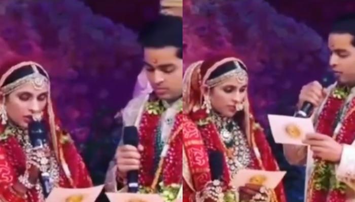 Scrolling through social media, we found a video of Akash Ambani and Shloka Mehta from their wedding, reciting their handwritten vows for each other. It had not only made the guests go all teary after hearing the vows but is bound to make you go all emotional as well. Their vows go like, “In happiness and sorrow, we shall conduct ourselves with dignity. In sickness and health, we shall be together” and so on.