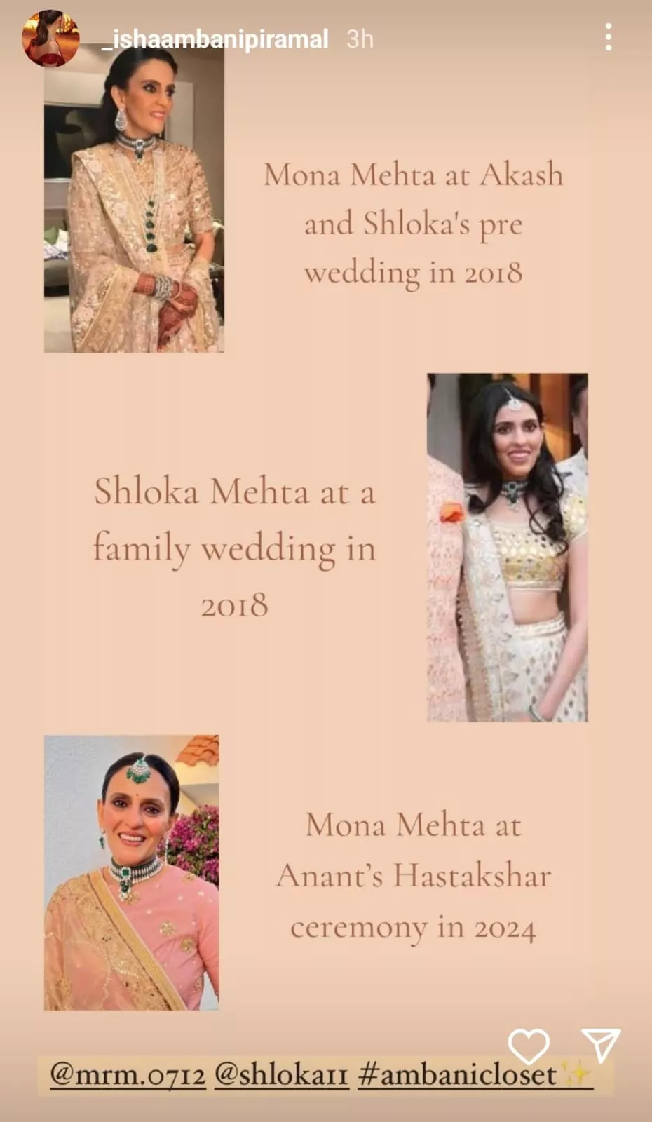 Now, in some of the glimpses shared by an Ambani fan page, we get to see that for one of the looks at Anant Ambani and Radhika Merchant's grand pre-wedding ceremonies, Mona opted for a stunning diamond neckpiece studded with emeralds. As per the same fan page, the necklace was initially worn by Mona herself at one of her daughter, Shloka Mehta and Akash Ambani's pre-wedding festivities. Again, Shloka wore the same necklace at one of her family's weddings that year. Now, Mona has borrowed the jewellery from her daughter yet again and set pure, sustainable goals.