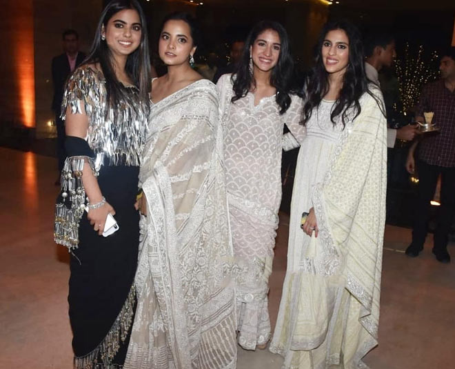 No matter where they are, Shloka and Radhika never miss a chance to pose together. In fact, they share an uncanny resemblance if you look closely. In 2020, the jethani-devrani duo was spotted together at an event. They were decked up in Abu Jani and Sandeep Khosla's pastel ensembles. We also spotted their sister-in-law, Isha Ambani, who was decked up in a black saree.
