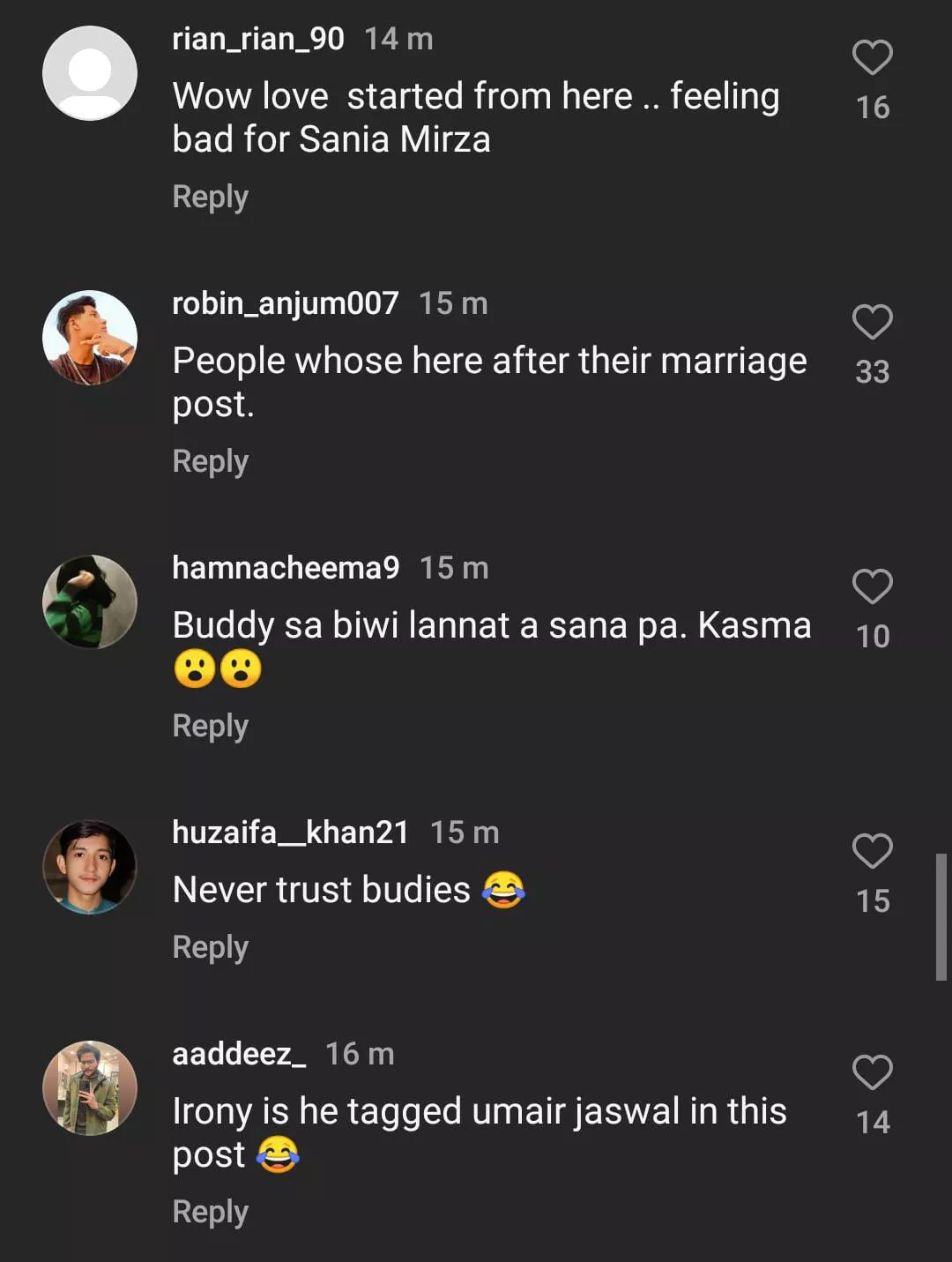 As soon as Shoaib Malik announced his marriage to Sana Javed, netizens dug out the old post of the cricketer. Now, taking to the comment section, some users are congratulating the couples, while others wonder if the newlyweds have been together for a long time. Reacting to the old post, one user penned, "Buddy se Begum tak ka saffar." Another user commented, "Ab samjh me aaya to kahani yaha se shuru hoi thi." A third comment reads, "Acha buddy ki starting yha see hui." Check out the comments below: