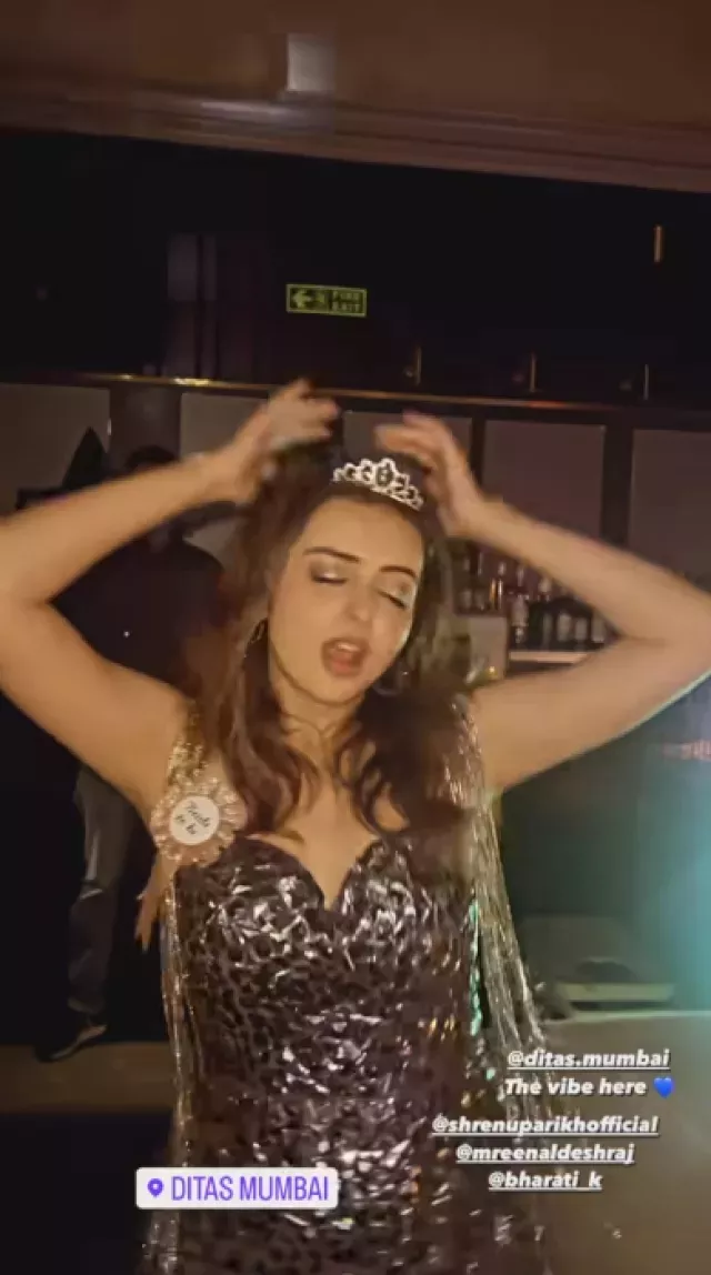 It was on November 26, 2023, when Shrenu Parikh’s BFF and actress, Mansi Srivastava took to her IG handle and dropped a few glimpses from the former’s grand bachelorette bash. Shrenu wore a silver-hued mini dress with triangular embellishments for her special day. She teamed her outfit with a short veil, a cute crown and glam makeup, including blushed and highlighted cheeks, nude lipstick, winged eyes and messy open hairdo. In the pictures, she was seen posing with her girlfriends, munching delicious food, dancing her heart out and enjoying her special day to its fullest.