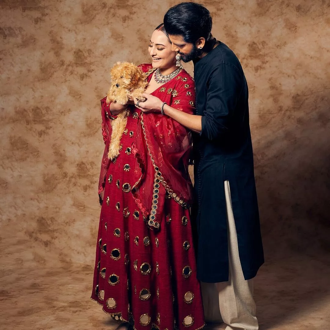 Sonakshi had added two images to the post in question. In both, she had a puppy in her hands, who seemed to be the newest addition to their little family. The first picture shows the couple looking lovely at the adorable little pup, and in the second, their happiness is reflected through big smiles on their faces. Sonakshi’s captioned the same: