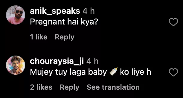 Sonakshi’s comment section was filled with fans complimenting the couple and their festive looks. However, some netizens started congratulating her or asking questions about her pregnancy status. One user wrote, “Congratss for having lil one soon”, while another commenter asked, “Pregnant hai kya?”. Yet another comment could be read as “Sona looks pregnant.”