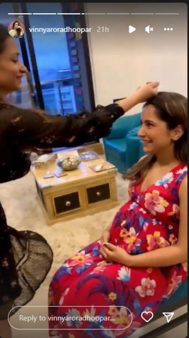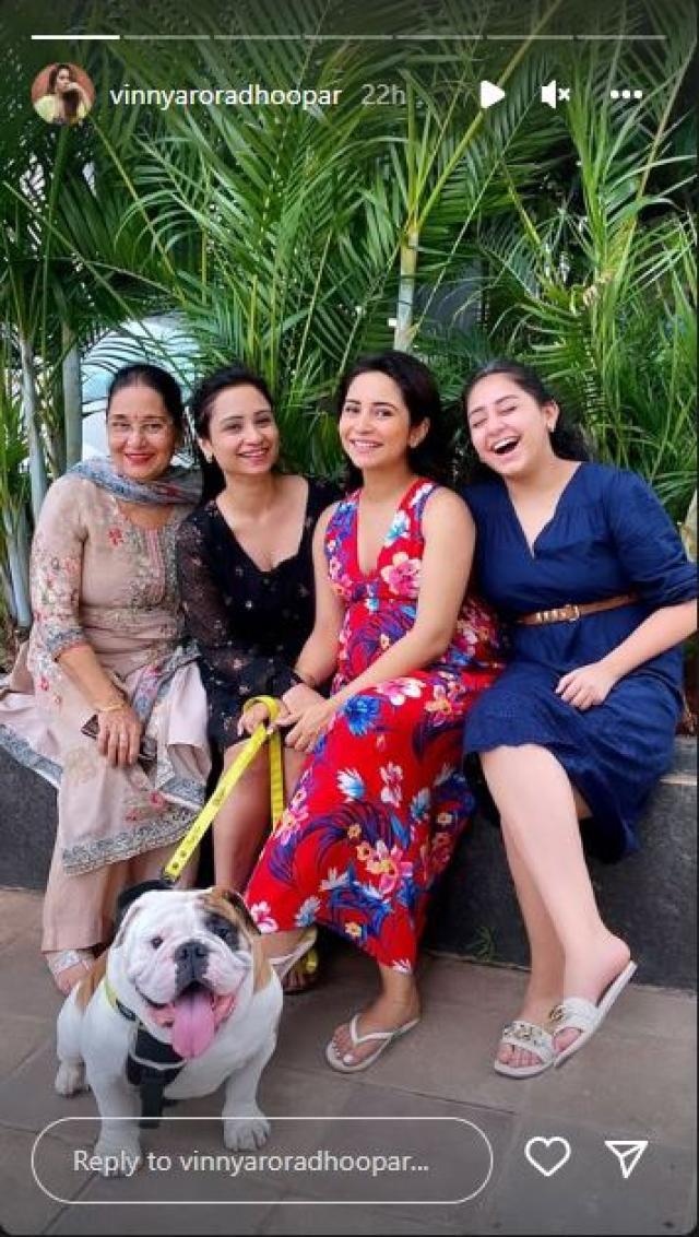 On June 12, 2022, Vinny Arora Dhoopar had taken to her IG stories and had shared an array of pictures along with her mom, sisters and her fur baby. In the glimpses, the mommy-to-be had looked gorgeous in a red floral printed dress while flaunting her full-grown baby bump. In one of the stories, we could see Vinny getting pampered by her sister as she was performing a ritual. Check out the glimpses:
