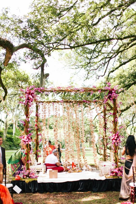 Ever wondered that the rustic village-thing can take your wedding theme to a different level altogether? For those who think outside the box can opt for a unique and innovative bamboo decor for their wedding canopy. The wild and Woodstock-inspired mandap will make for a super desi setting for the lovebirds under it. This is a creative and chic design that would also work well for a simple low-budget wedding.