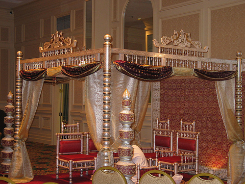 Anything carved or done in abundance of rich roses look resplendent and relaxing. So, to have your wedding look like fallen out of a storybook; spread the magic with luxurious red or deep pink roses. Velvety flower accents adorned to the ceiling, strung to the pillars of the canopy or spread all over the roof will add an extra edge of elegance to your wedding decor. The couple can well fly off to a ‘Once Upon A Time’ land while they are saying ‘I do’.