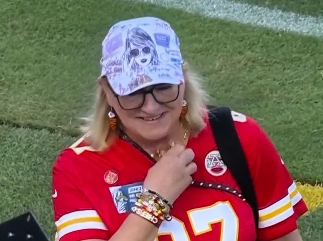 Taylor Swift's busy schedule kept her from yet another game. Travis Kelce arrived on his own, and his mother, Donna Kelce, was spotted at the game as well. However, she carried Taylor's energy with the pin, referencing Taylor's tweaked Karma lyric, "Karma is the guy on the Chiefs." Taylor recently also opened up about why she has been keeping her appearances at the games private.