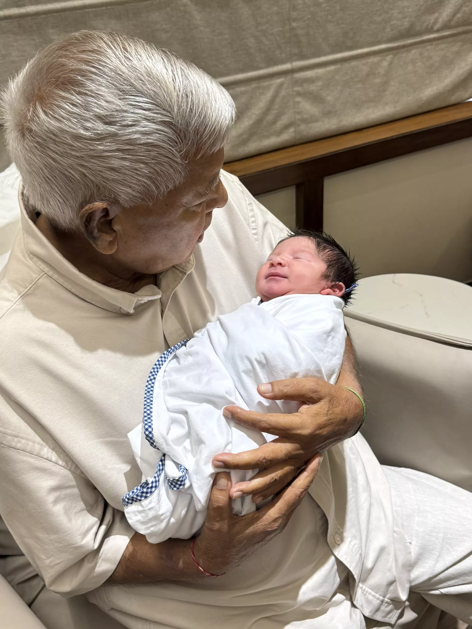 Tejashwi Yadav's father, Lalu Prasad, welcomes his grandson to their family