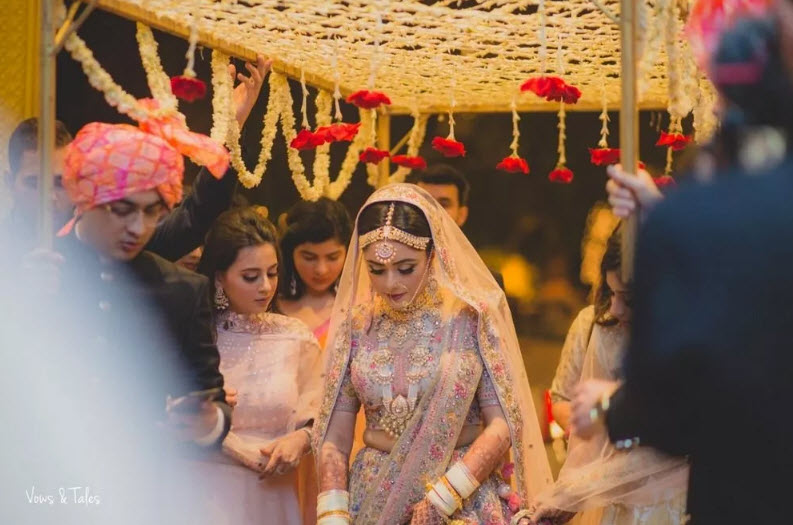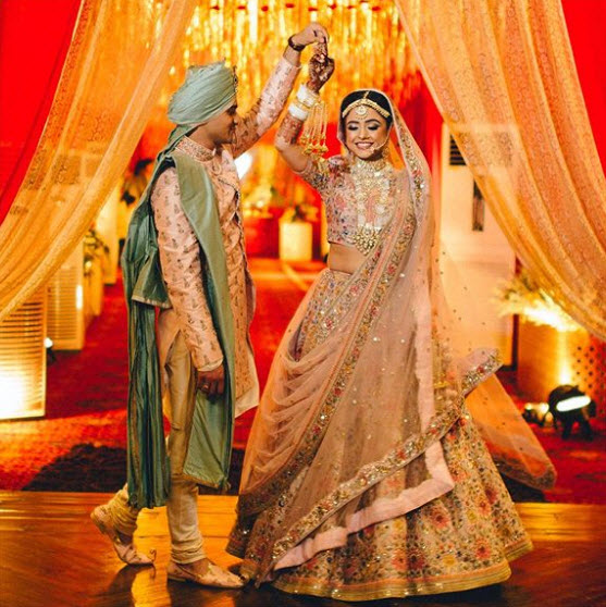 Meet the bindaas bride, Akriti Chadda from Ludhiana, who had walked down the aisle with her beau, Aashir Gajjar on July 7, 2018, in a 10-day long celebration. Akriti and Aashir’s wedding ceremonies had begun with a puja in Jalandhar and ended with a lavish reception in Ahmedabad. For the wedding, Akriti, just like most of the brides nowadays, opted for the celebrated designer, Sabyasachi Mukherjee, and stole our hearts with her elegance. Akriti’s peach lehenga with intricate floral embroidery was similar to that of Anushka Sharma’s bridal lehenga. While the very name of the designer is enough to trigger our curious minds, we have a very fascinating fact to share about Akriti’s bridal look.