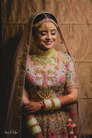 Gone are the days when the ivory/white colour was considered to be inauspicious for a bride. Nowadays brides prefer going experimental with their ensembles and jewellery. And if given a thought you would realise that be it with pastels or the traditional red, the ivory/white chooda looks wonderful and is definitely not a bad option. Having a deep traditional significance, there is no other wedding accessory that screams ‘bride’ as the chooda does. Let us introduce you to a bride, who will inspire you to get experimental and opt for a white/ivory chooda instead of a traditional one!