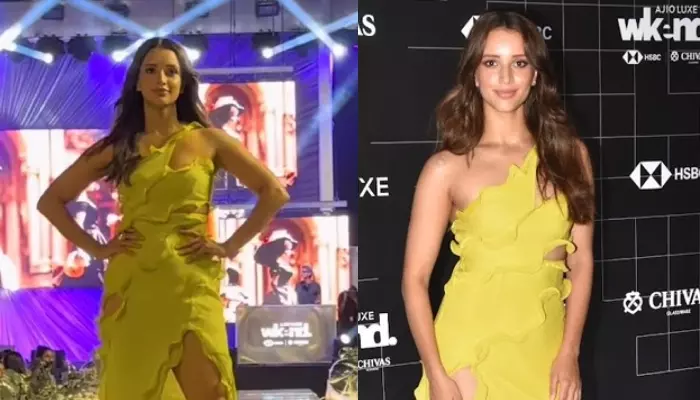 On January 12, 2024, Triptii Dimri walked the ramp at the grand Ajio Luxe Weekend event held in Mumbai. In a video shared by a paparazzi, Triptii can be seen gracefully flaunting her curves while walking on the ramp. She looked gorgeous in a one-shoulder yellow-hued asymmetrically cut gown. The diva teamed her look with shimmery silver-hued stilettos and a statement ring. Glam makeup, including highlighted cheeks, nude lipstick, smokey eyes, and open tresses added stars to her look.
