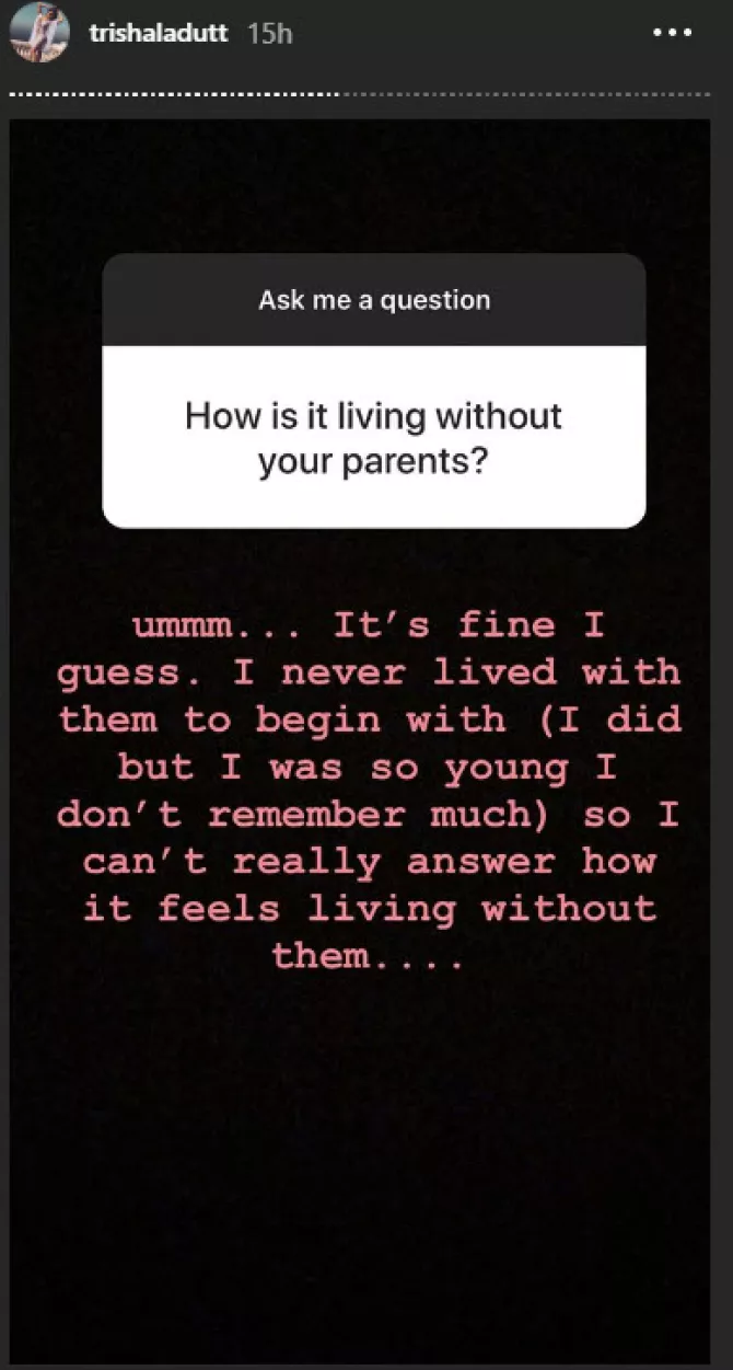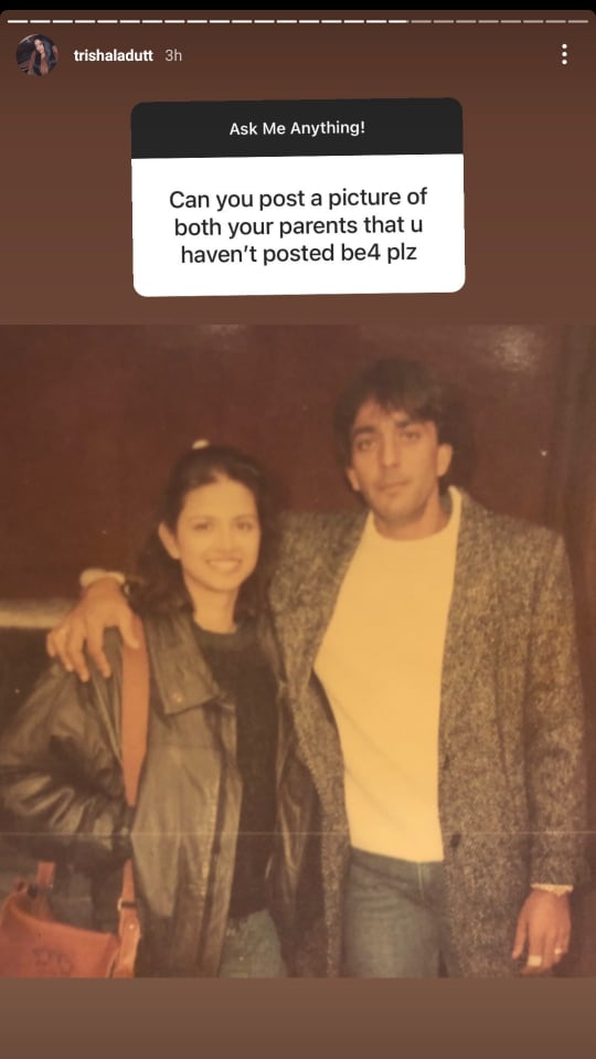 In a throwback ‘Ask Me Anything’ session, when Trishala Dutt was asked, “How is it living without your parents?” she had retorted, “It’s fine, I guess. I never lived with them to begin with (I did but I was so young I don’t remember much) so I can’t really answer how it feels living without them.” When another user asked her “How do you feel being Sanjay Dutt’s daughter?” Trishala candidly answered, “Honestly, it feels normal. He's like any other father. When I'm with him, it feels like I'm with my dad. It doesn't feel any different than what you probably feel when you are with your father.”