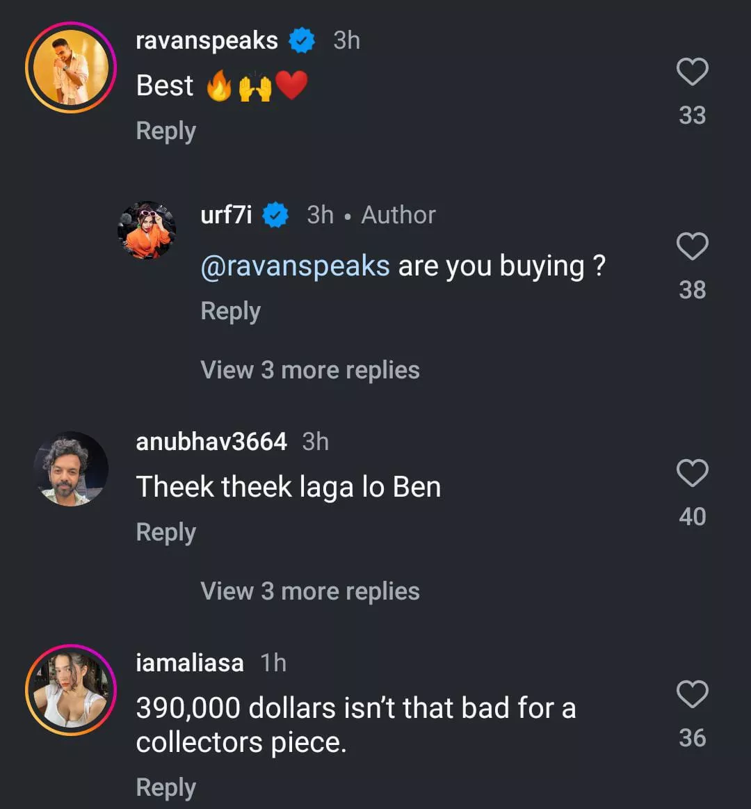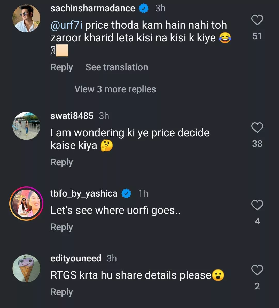 As soon as Uorfi Javed shared the post on her IG handle about selling her gown for more than Rs. 3 crores, netizens rushed to the comment section and created a meme fest. Moreover, internet users remained shocked over the high price of the dress and started making jokes about the same. While some joked that the dress' price is equal to an apartment, others humorously asked if EMI is available.