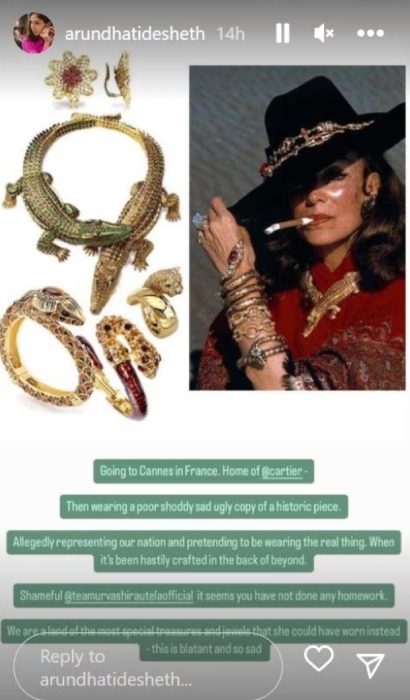 In the next IG story, the jewellery expert shared glimpses of the original piece. She shared that Cannes in France is the home of Cartier, and wearing an ugly copy of the historic neckpiece, while representing India is shameful. Arundhati wrote: