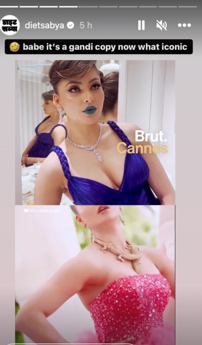 As soon as the jewellery expert shared her opinion, Diet Sabya reposted her stories. The IG page also shared a video of Urvashi, and called her jewellery a 'dirty copy'. They also shared the history of the jewellery and how only three women all over the world wore it. Diet Sabya called Urvashi's jewellery a fake one with proper claims.