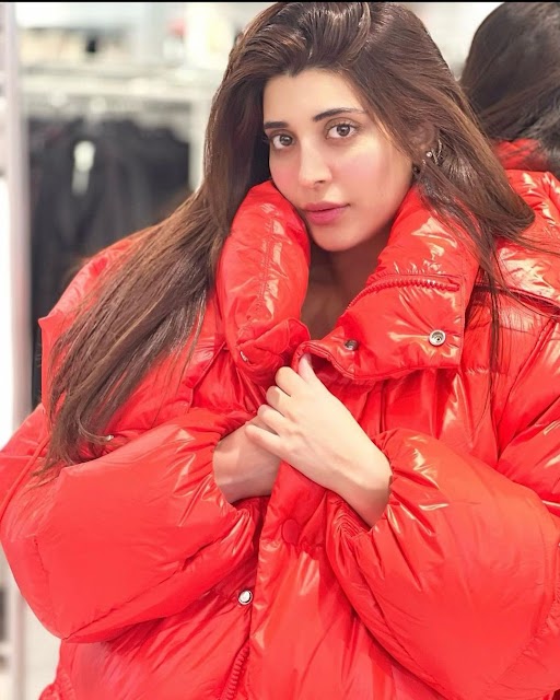 On the same day, Urwa posted a picture of herself decked in a red puffer jacket. The Udaaria actress looked stunning in the simple attire, and her pregnancy glow was hard to overlook. In the picture, Urwa had no makeup on and only accessorised her look with earrings. She captioned her picture as: