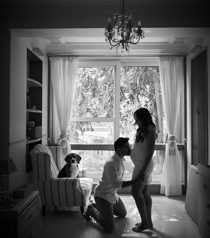 Varun Dhawan took to his official Instagram account on February 18, 2024, to announce that he and his wife, Natasha Dalal, are expecting their first child. The Bollywood actor posted a monochrome picture of him giving a sweet peck of love to his wife’s growing baby bump. In the picture, the actor was seen kneeling down, and Natasha, on the other hand, flaunted her baby bump in a white bodycon dress alongside their fur baby, Joey. Varun captioned the post as: