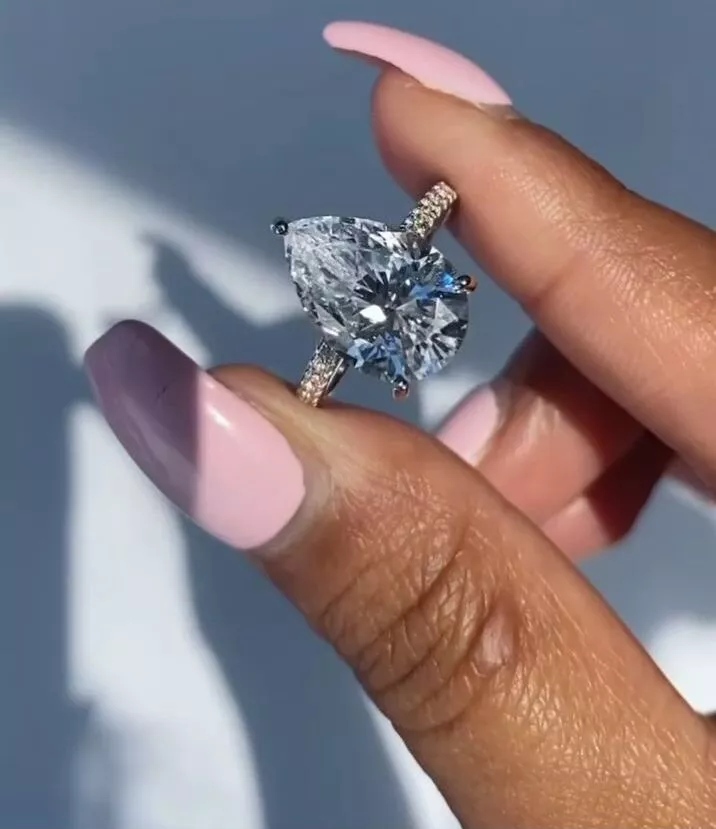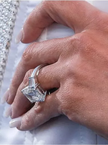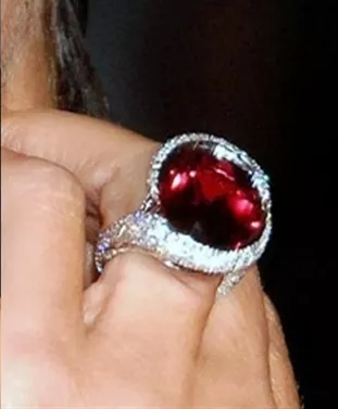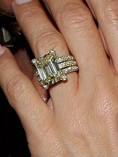 The former Spice Girls member stunned with a massive 17-carat pear-cut diamond set on a pavé band in 2005. It is one of her most pricey jewelry possessions. This iconic ring is often worn by her during public appearances, even to date, and its price is estimated at around 4 million pounds.