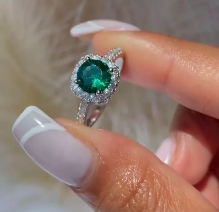 In 2007, Victoria showcased this striking cushion-cut emerald with a spiral pavé band. The bright green square stone, set amid a dazzling, clear diamond and platinum border, is sure to grab all the attention. The stunning piece reportedly weighs 25 carats and costs 3 to 3.5 million pounds.