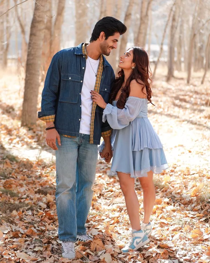 Taking to their couple account, the duo shared the good news with their fans. Shreya was dressed in a red tie-up crop top with frill details for the day. She paired it with denim shorts and high-rise boots. Shreya kept her hair loose in curls and accessorised her look with hoop earrings and a few rings. Rishabh, on the other hand, looked dapper in black jeans paired with a tee and a beige-hued jacket.