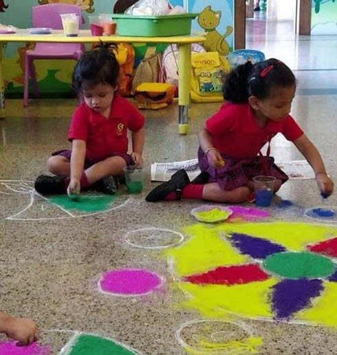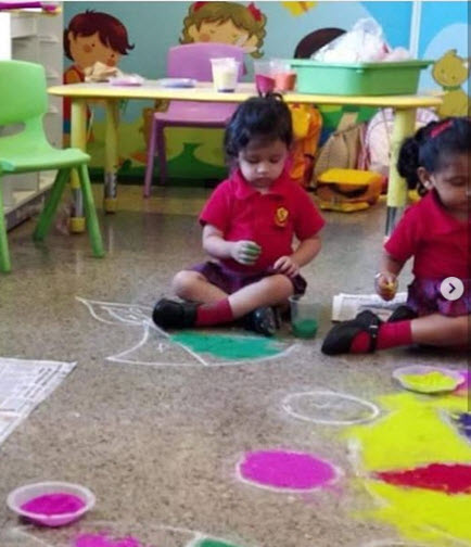 But we have something cuter in store for you. Ziva, who has recently started going to school was seen engrossed in making rangolis along with her classmates. Also shared below, are a couple of inside pictures from her school. Check them all out and don’t tell us that we didn’t give you a cuteness alert in advance!
